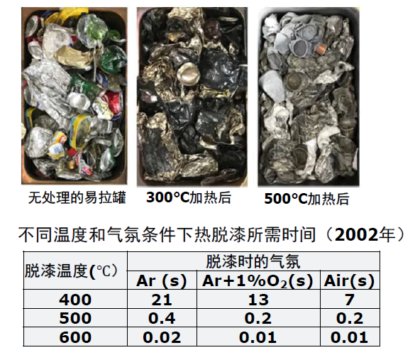 铝合金表面的涂层主要是有机物,通过加热可以使涂层充分挥发和碳化实现“脱漆”。