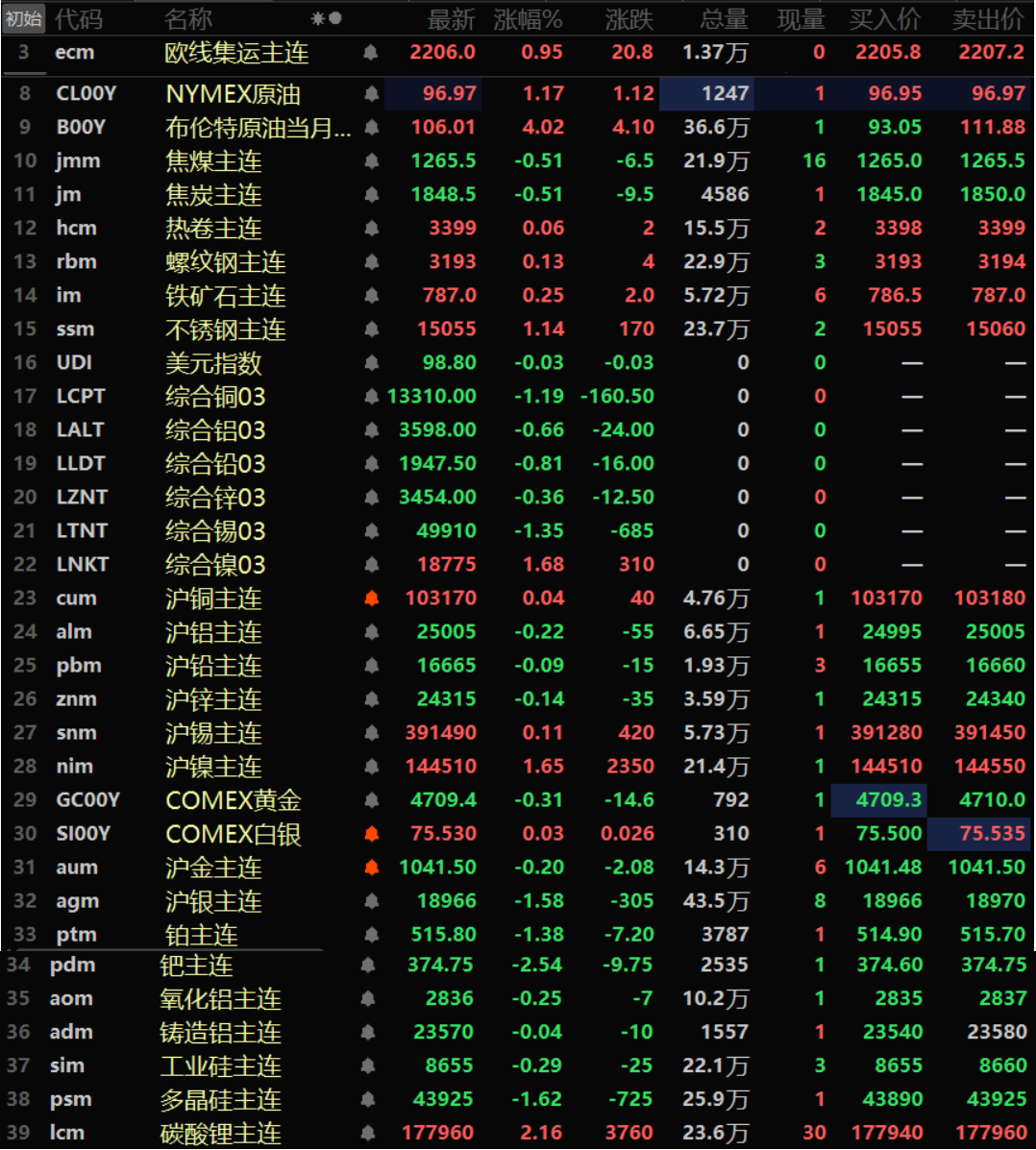 截至隔夜收盘,两市油价一同上涨,美油涨4.35%,布油涨4.02%,录得四连涨。因中东局势再度升级,霍尔木兹海峡形势严峻。