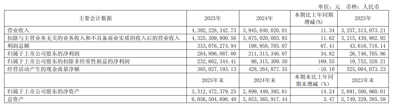 春秋电子4月21日发布2025年业绩报告显示,2025 年全年,公司实现营业收入 43.92 亿元,同比增长 11.34%;归属于上市公司股东的净利润 2.85 亿元,同比增长 34.82%。