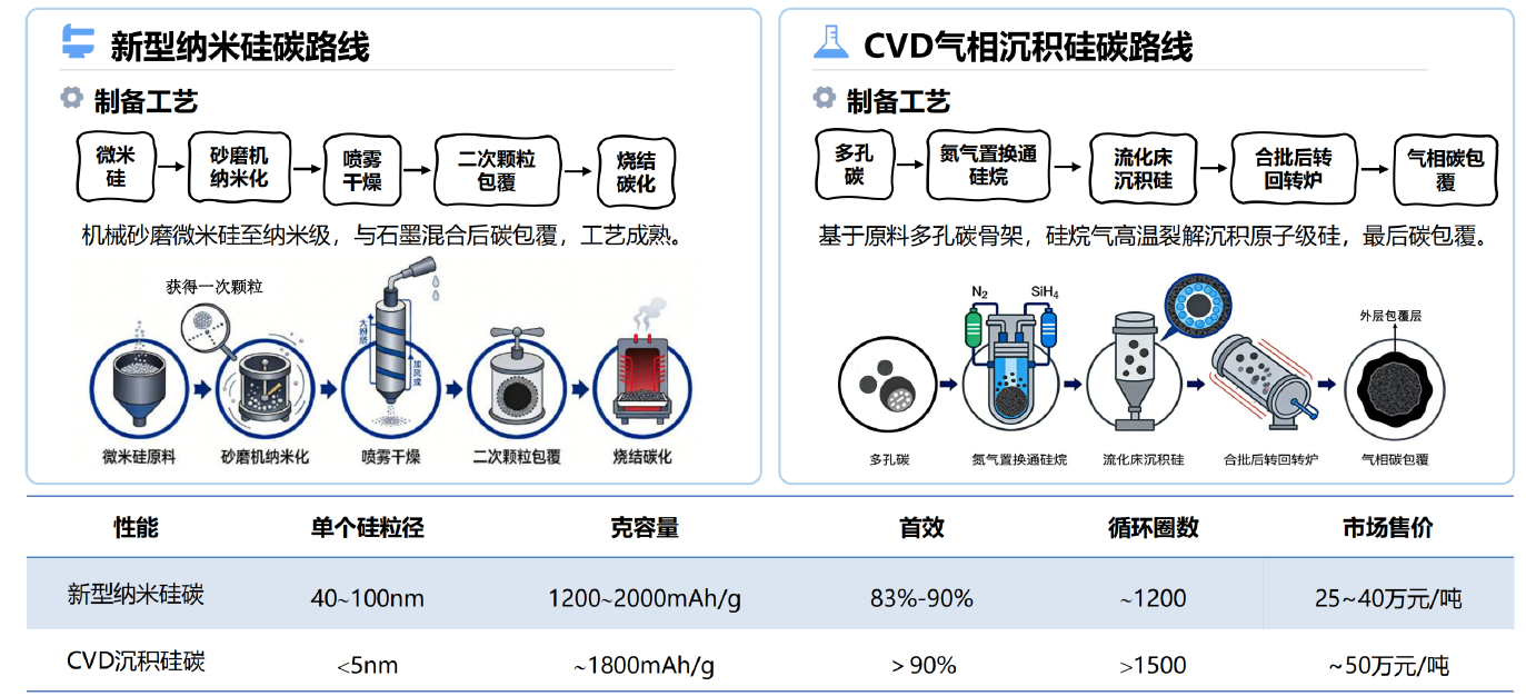 新型纳米硅碳 VS CVD气相沉积硅碳均复配至500mAh/g
