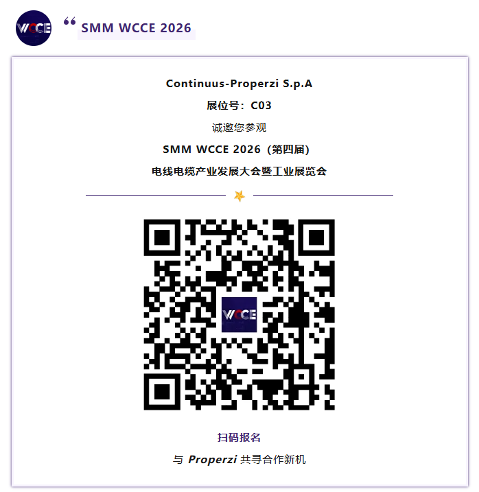 2026年5月14-15日,江苏・苏州国际会议酒店,欢迎各界朋友莅临大会现场,走进Continuus-Properzi S.p.A(C03)的展位,近距离铝铜线材生产技术企业的技术实力与产品魅力,共寻合作新机,共启产业新篇。