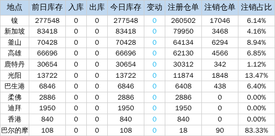 4月23日LME金属库存及注销仓单数据