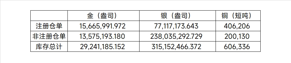 2026年4月23日COMEX金属库存
