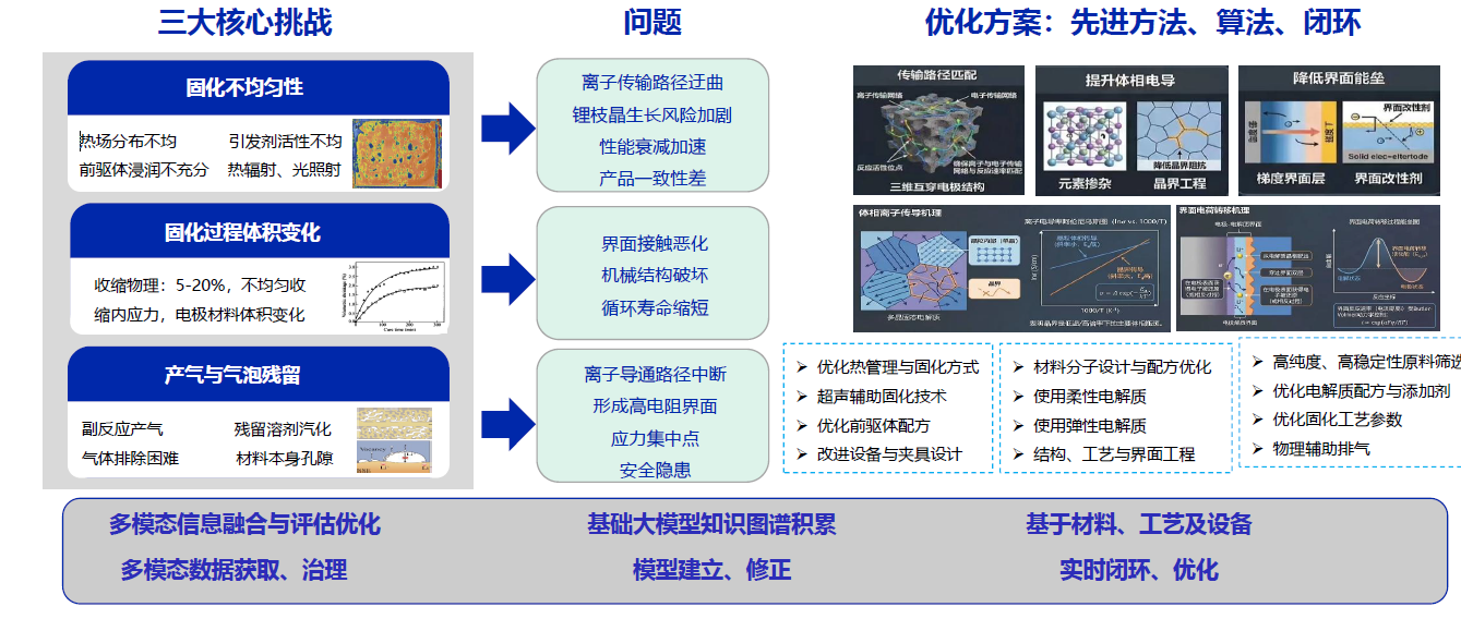 1、干法混合均匀问题;2.干法与湿法膜制造选择;3. 电解质连续无孔独立成膜;4.模切与叠片、内串结构选择;5. 智能化成--最佳SEI;6.基于制造大模型的高质量制造。