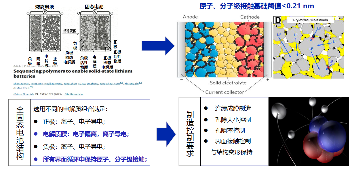 全固态电池设计、制造核心问题:固态电池原子、分子级界面及使用过程中始终保持。