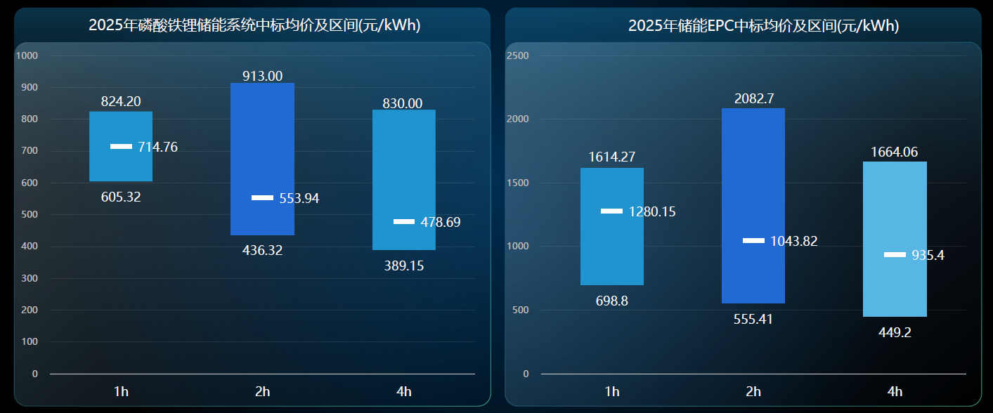 2025储能项目中标数量较2024年略有缩减,但是中标规模仍然大幅增长,合计规模增速超230%。体现出2025年中标项目从“冲数量”到“重质量”的转变。