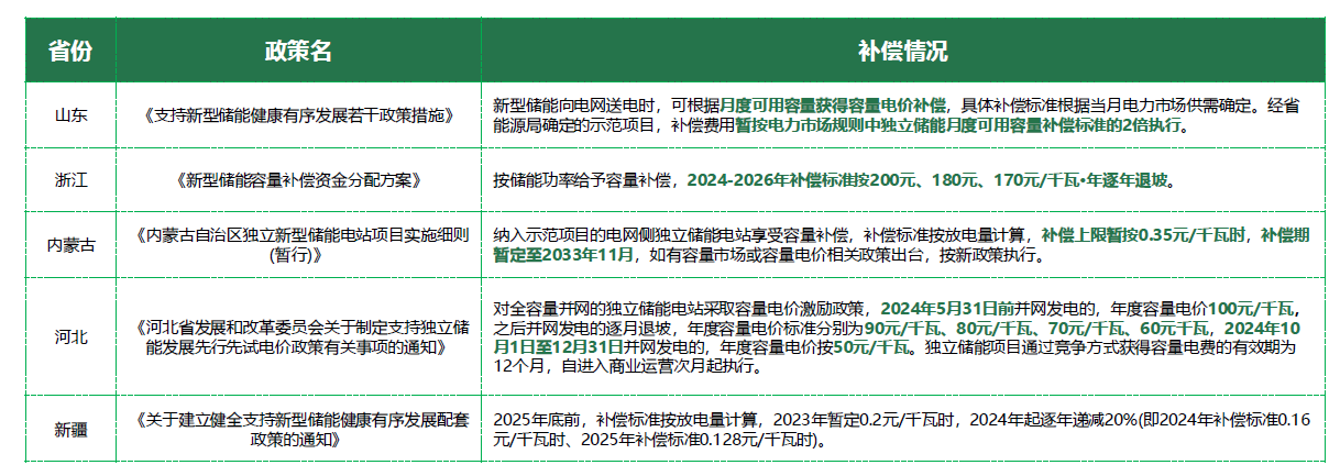 各省份新能源、新型储能参与市场方式