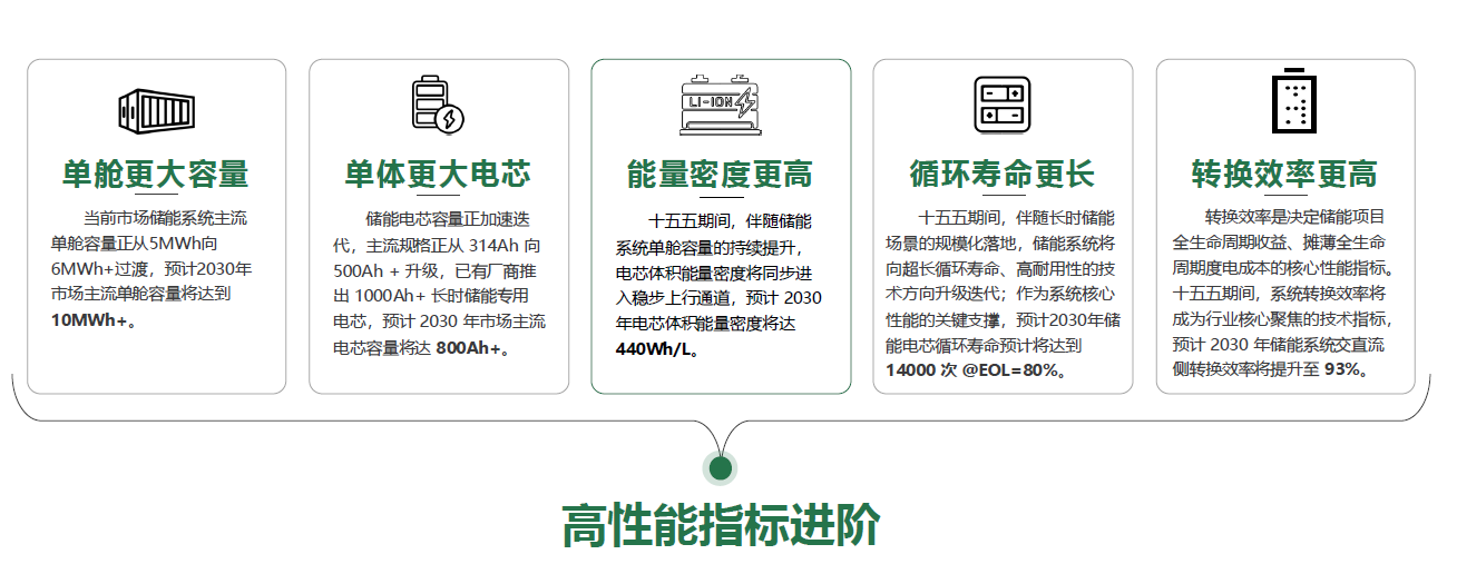 高性能指标进阶:更高能量密度、更大单舱容量、更长循环寿命等;