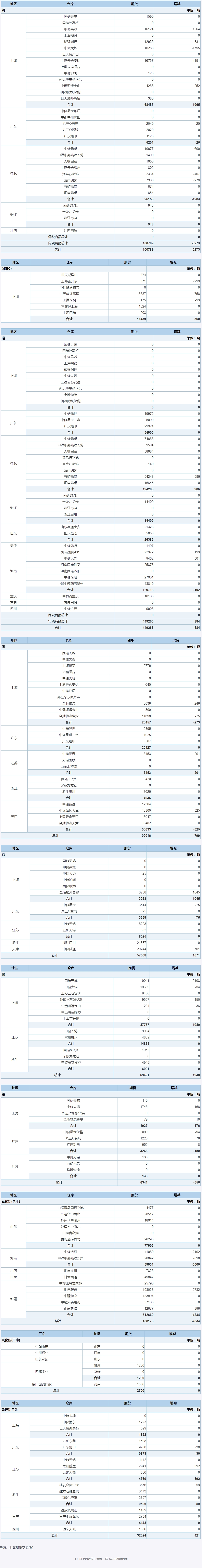 4月29日上海期货交易所金属库存日报