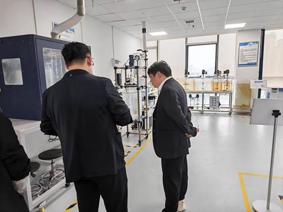 调研期间,双方围绕铼产业链发展现状、行业运行痛点、未来发展趋势展开深度座谈交流,并针对铼相关生产工艺、核心生产设备技术、精细化生产管控等专业领域进行了探讨。此外,在丁博士、龙锦等企业领导的陪同下,调研团队实地参观了公司核心生产厂房与智能化生产线,直观考察了企业环保装备、专用环保药剂的研发生产情况,重点了解其适配有色冶炼场景的污酸处理、稀贵金属回收成套设备运行流程。
